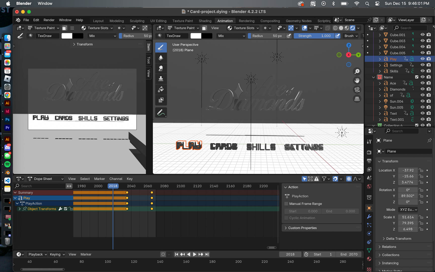 I want to create and animate cards in Blender, but to add more details, i made it into a mini game by doing a main menu