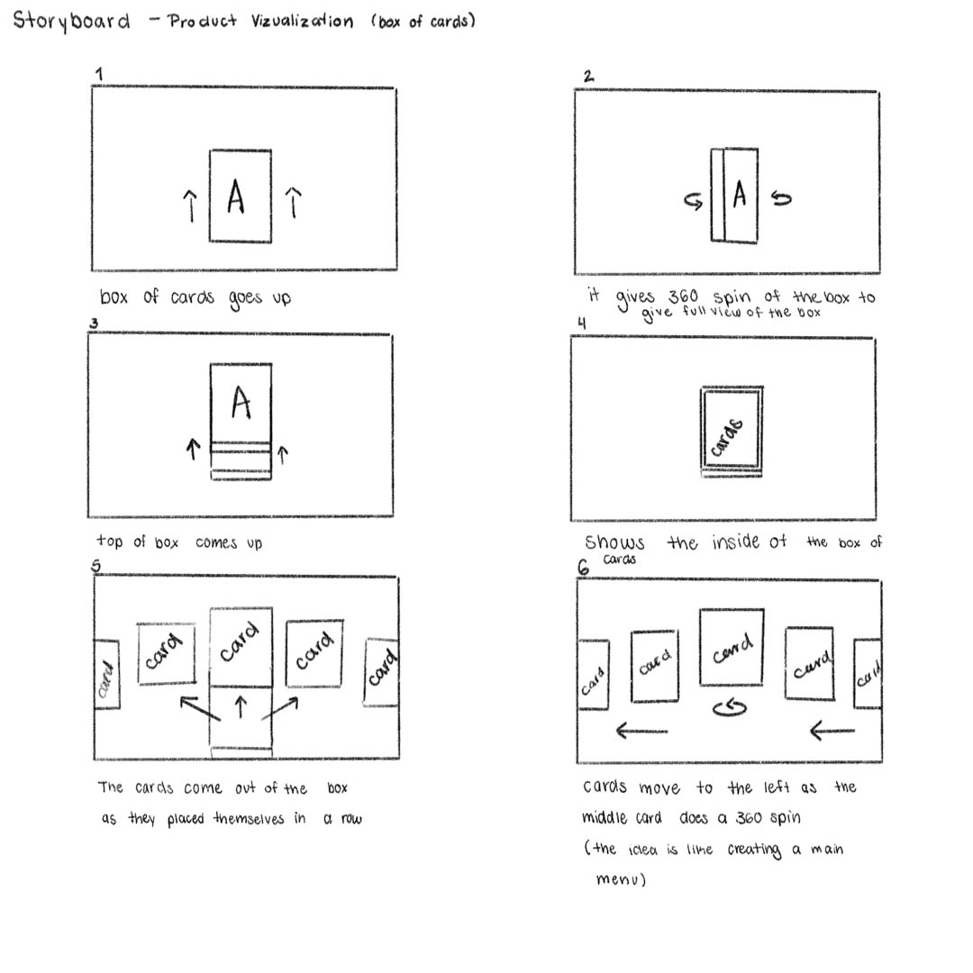 Here is the storyboard of how it was originally supposed to goThis is the sketch of the box where the cards come out and the arrows show the movementThis is the sketch of a few cardsthis is how the blender set isthis is how i designed the boxthese are the cardsI was a being extra and focused a lot on the animations and it is at 2070 frames :,Dthis card is just a blank place holder cardthis is the flight ability cardthis is the healing ability cardthis is the joker card